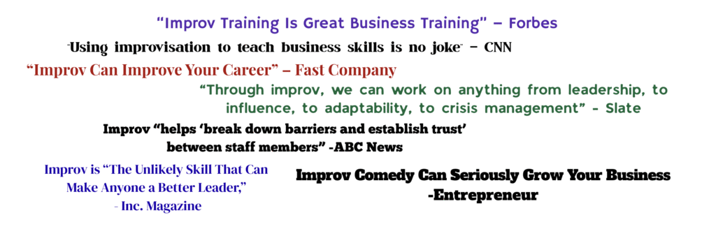 Improv is the magic genie that makes you laugh while building trust, raising positivity, and enhancing productivity!